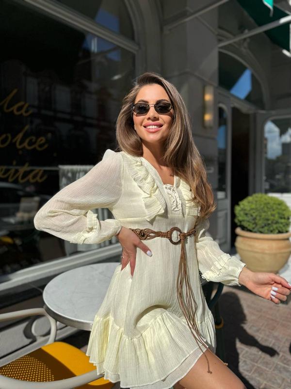 Воздушное легкое шифоновое платье, с акцентным пояском в комплекте❤️ Мод: 2379 Размер: м, л Ткань: шифон на подкладке Длина 83см