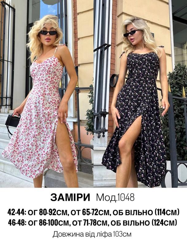Тканина: софт принт Размеры: 42-44, 46-48 Цвета: черный принт, белый принт Платье на бретелях, которые регулируются. На спине резиночки.
