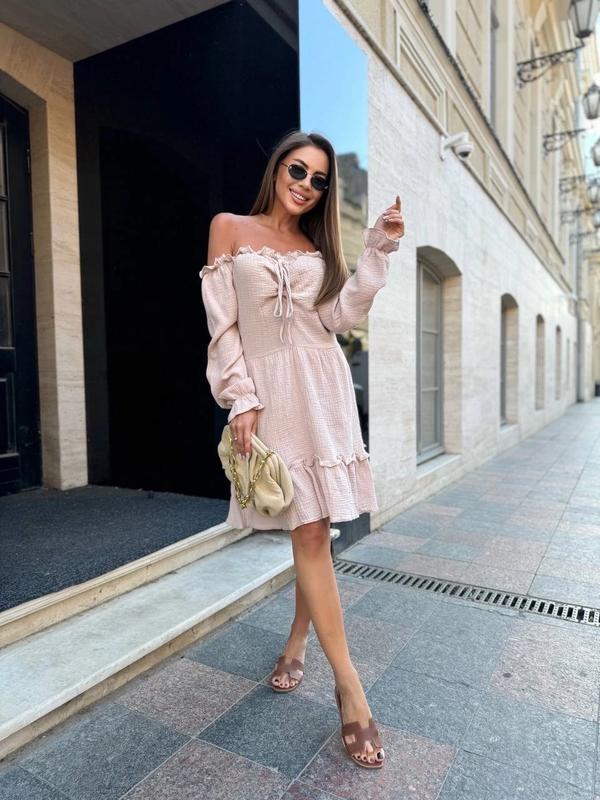 Сукня Код модели: 171 Ткань : муслин Цвет: малина, черный, голубой, бежевый Размер: S, M, L новая Цена: 540 грн Размер : S Длина по спинке: 83 см Обхват груди : 85 см ( резинка на спинке и на груди ) Обхват талии : 65 см Длина рукава: 59 см Обхват бедер : 130 см (свободного кроя) Размер : М Длина по спинке: 83 см Обхват груди: 87см Обхват талии : 67 см Длина рукава: 59 см Обхват стегон : 130 см Размер : L Длина по спинке: 84 см Обхват груди: 90 см Обхват талии : 71 см Длина рукава: 60 см Обхват стегон : 132 см код1915(дав)
