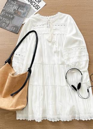 Волшебное женское платье белого цвета с кружевными вставками😍 Мод: 2365 Цвет: белый Размер: универсал с/л Тканина: котон, мережево