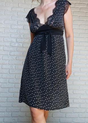 Романтичное платье в мелкий горох, со вставками французского кружева. Нежная и изысканная в одновременно. Размер М На фото одета на размер М рост 174 см Дополнительные фото и замеры отправь по запросу