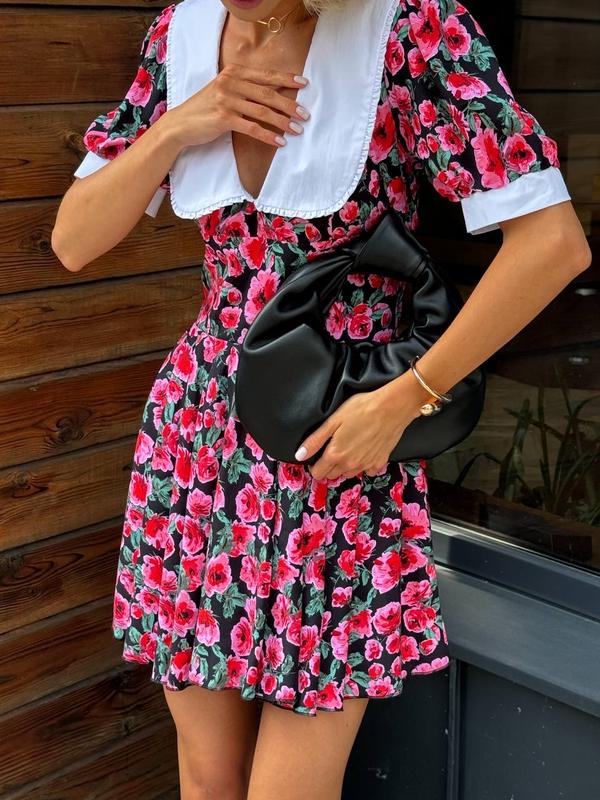 N 726 Платье из летней ткани вискоза в цветочный принт Размер: XS-S,M-L