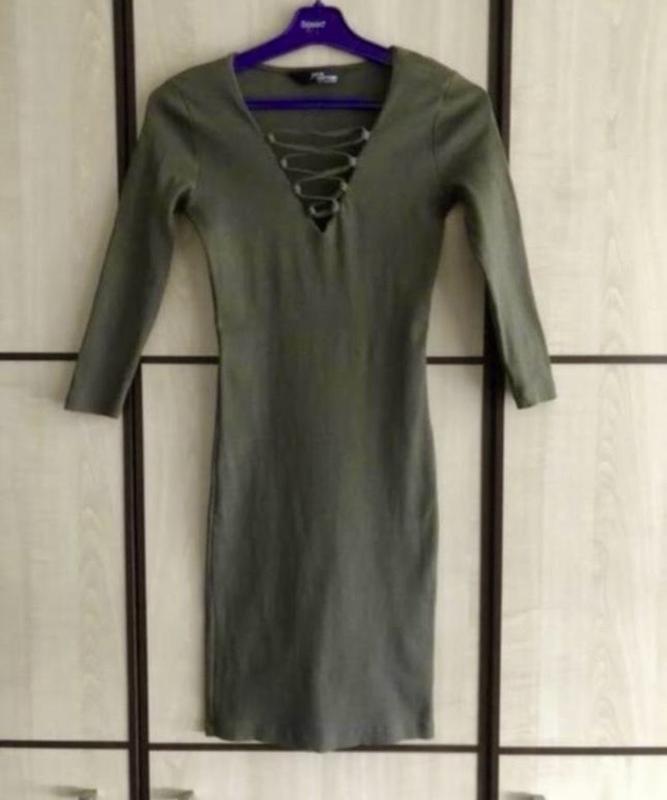 Красивое платье в рубчик. Цвет милитари., длина 84 см, по плечам 33 см, по груди 35, по талии 27, по бедрам 30, растягивается в стороны на 15-16 см. Состояние новой вещи