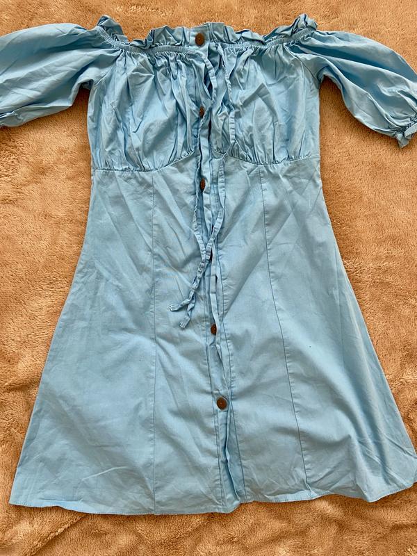 Платье голубого цвета Наиболее похоже на цвет, как в жизни на 2 фото. Сверху на резинке, можно опускать плечи. Натуральная ткань, легкая и удобная на лето. Длина 67 ПОГ 35