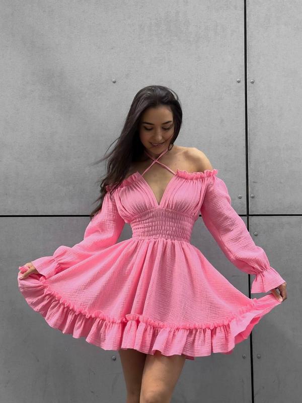 Дорогие друзья, по вашим требованиям добавляем фото на модели 💛💕💗 _____ Муслиновое платье, которое подчеркнет твою женственность🌺🌸🌸 (Фото и видео приема) ▫️мод: tr 0654 ▫️Размеры: 42-44 46-48 ▫️Ткань: Натуральный Муслин ▫️Цвет: Розовый, голубой, желтый ▫️Цена: 780 грн🔖 Идеально садится по фигуре, можно носить как с объемными рукавами так и со спущенными плечами. На груди регулируется завязками.