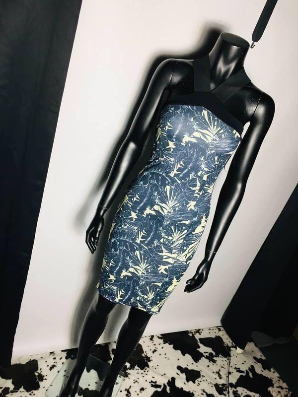 платье с принтом листья quiz Полуобхват груди 34 тянется до 40 Полуобхват бедер 39 тянется до 44 Длина от плеча 96 С Арт. #1610