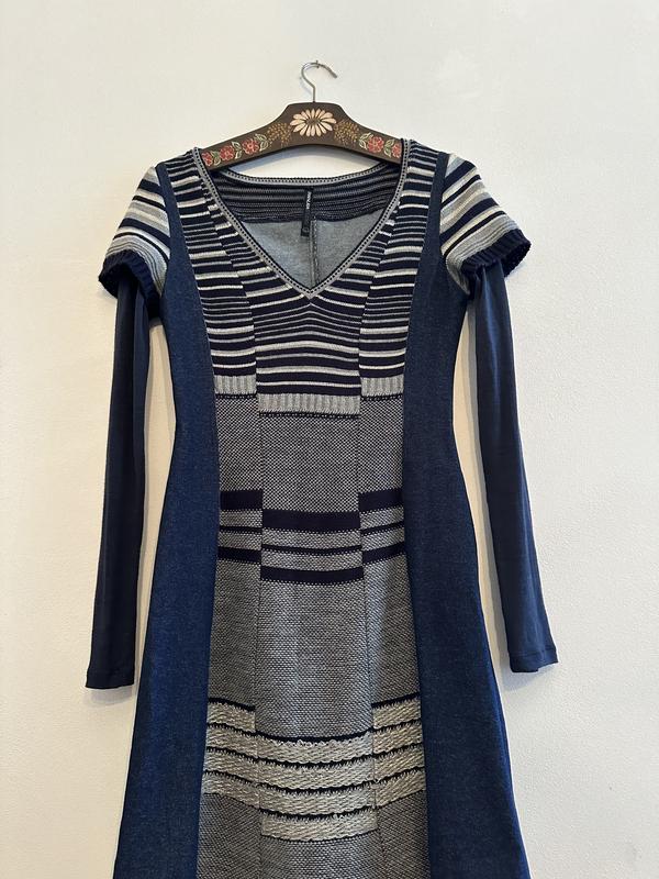 Стильне дизайнерське плаття. Без дефектів. Всі Бірки є. Довжина від плеча 93 Плечі 42 Короткий рукав17 Довгий 69(є невеликий дефект,на фото) Пог 43-49 Пот 36-41 Поб 46-55 Без підкладки та карманів