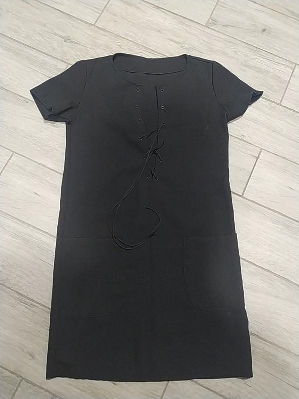 Прямое платье на шнуровке прямого кроя с карманчиками Длина 85 см пог 46 поб 46