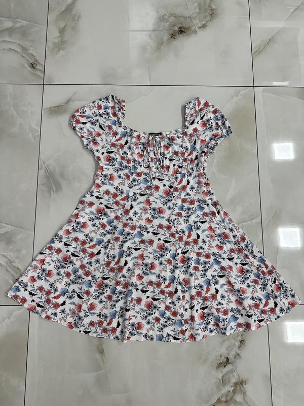 Очень красивое платье в цветочный принт в идеальном состоянии. Застегивается сбоку на молнии. Ткань 100% вискоза. Размер 42, подойдет на M-L. Замеры на фото.