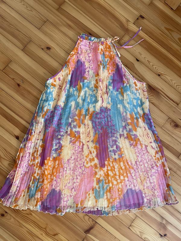 Дуже легеньке, яскраве, не мнеться, підкладка непомітна, розмір S-M, довжина 86см., бедра до 110см. Стан нового .