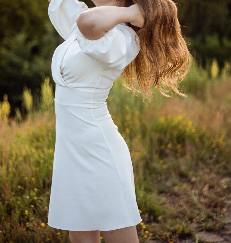 Платье бело-молочного цвета, 36 размер (подойдет на хс-с). Одевала два раза на фотосессию и выпускной.