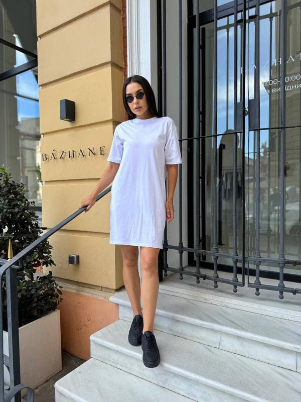 Легкое платье свободного кроя с короткими рукавами, округлым вырезом, внизу платья небольшие разрезы по боковым швам. Платье "универсальное" подойдет женщинам с любым типом фигуры, образ можно дополнить кроссовками, кедами, стильными босоножками. Модель:5118 Размеры:42-44,46-48,50-52 Ткань:турецкий трикотаж кулир 🎨Цвета: голубой,бирюза,персиковый,черный,белый,синий