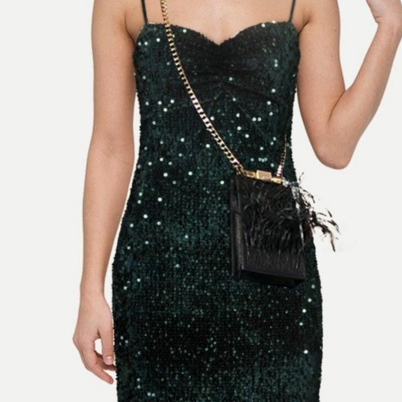 очень красивое вечернее платье в поэтках, зумрудного цвета. Идет на подкладке. ткань непрозрачная, немножко тянется. Подойдет на размер S и маломерную М. Заміри - полуобхват грудей 35 см, полуохват талии 36,5 см длина платья без бретелей 67 см, брители регулируются.