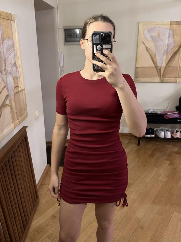 Очень красивое бордовое платье Zara, в идеальном состоянии, станина очень хорошо тянется, подойдет как и на размер XS-S (на мне на фото), так и на М-Л Розмір на бірці М Мои настройки на фото 87-65-94, рост 165 см