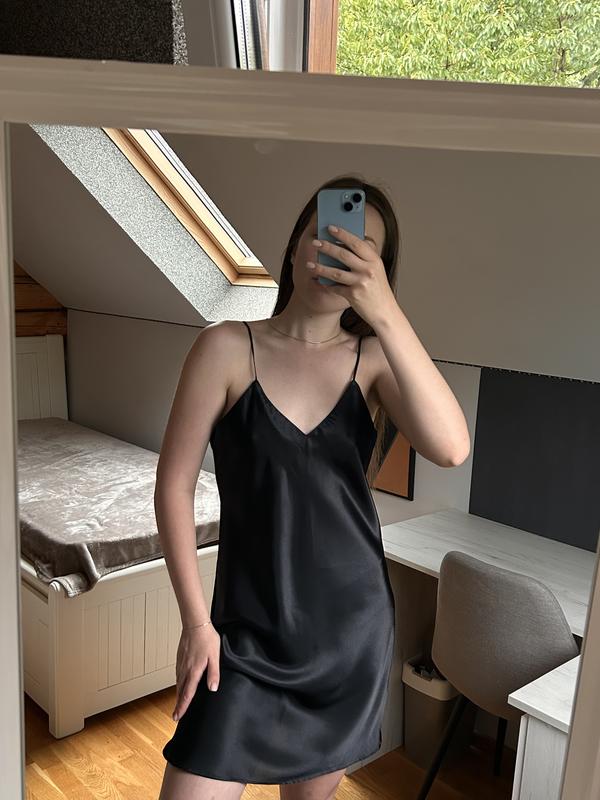 Атласное платье, которое также подойдет и для сна. Бретели регулируются Размер L,также подойдет и на М-S (быта свободно) Длина- 69 Ширина- 51 Есть дефект (присутствие одной затяжки, но на носке не влияет☺️)