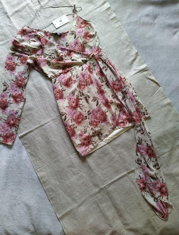 Платье с одним рукавом в цветок Новое с биркой Размер С Замеры: Длина 88 см ПОГ 44 см ПОТ 34 см ПОБ 50 см
