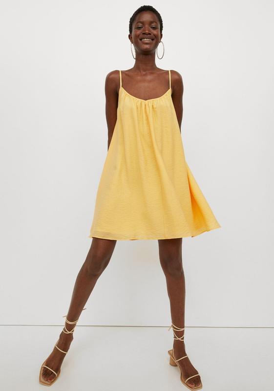 🌿желтое платье H&M свободного кроя с подкладом, ткань 87% лиоцелл, 13% полиамид Размер:XS Замеры:ПО груди 44 см, длина 88 см