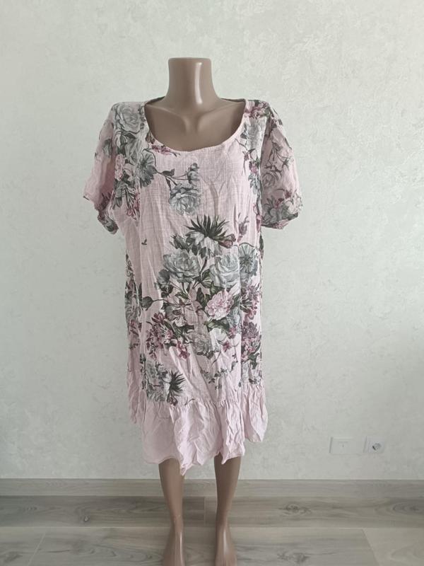 Платье женское в отличном состоянии, 100% лен. на 48-50 размер. Длина- перед- 95 см, зад- 104 см. Рукав- 20 см, ПОГ- 64 см, ПОБ- 78 см.