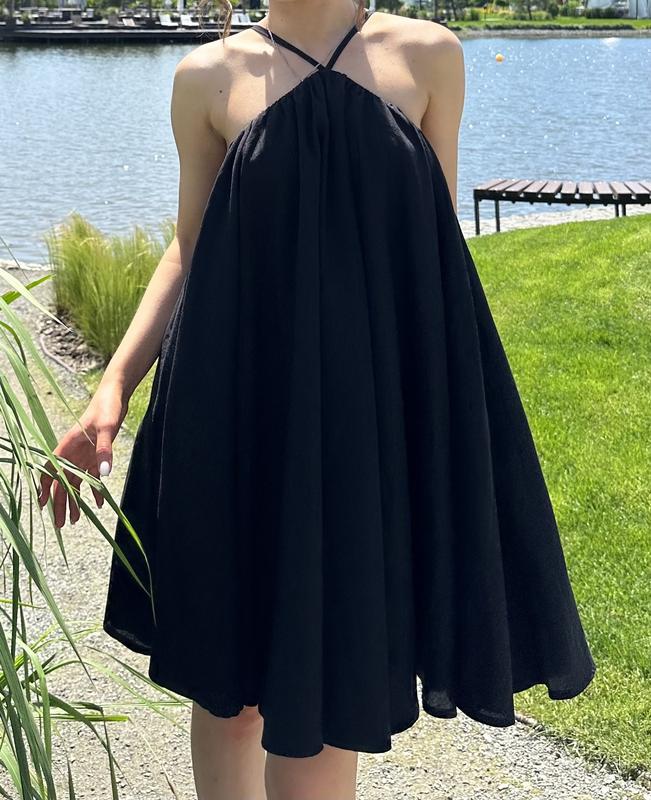 Лляна сукня, дуже легка та приємна до тіла, не парить. Йде в одному розмірі доступна в чорному та білому кольорах.