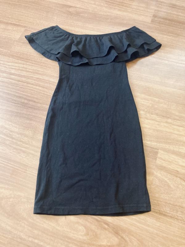 Эффектное платье Miss Selfridge по фигурке с открытыми плечами. Спущенный двойной рукав-волан. Тянется, очень красиво подчеркивает фигурку Склад: 96% бавовна, 4% еластан