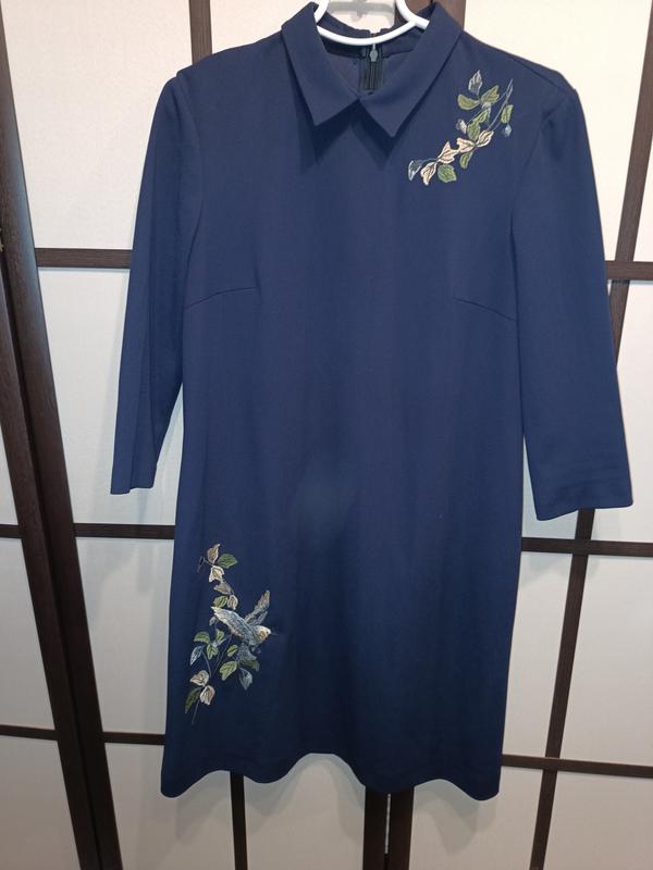 Красивое темно-синее платье с вышивкой и рукавом 3/4. Длинна 95 см