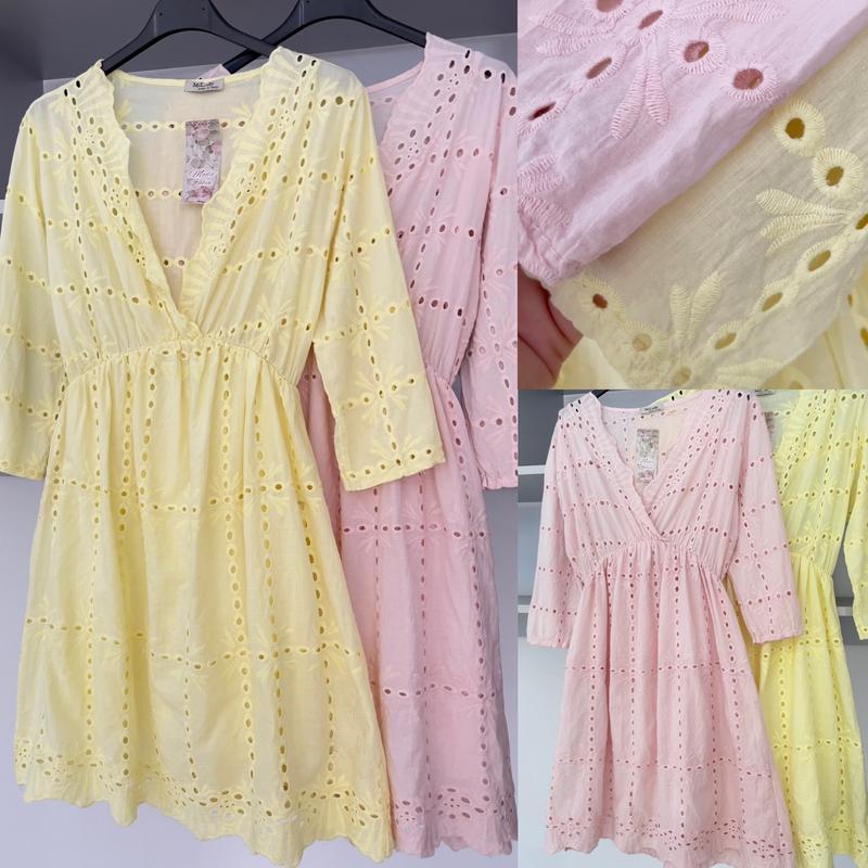 Снижка!!️Цена 450 грн🔥🔥🔥 Платье из прошвы, производитель Италия👌 На натуральной подкладке Два цвета 🩷💛 Размер универсальный пог 48, длина 87см.