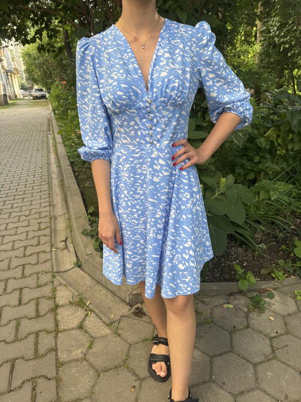 Синее платье, из очень приятной ткани, немножко тянется 38 размер