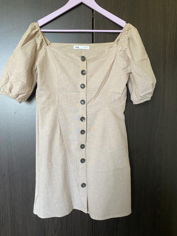 Летнее платье, ткань под лен, размер с. Интересные пуговицы под дерево