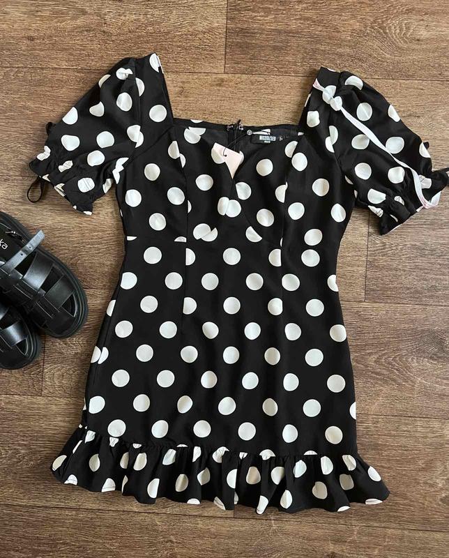 Платье в горох новое Missguided, размер S-M, длина 79 см, полуобхват груди 45 см, полуобхват бедер 50 см, длина рукава 26 см, застегивается сзади на молнию, красиво сидит на теле, подчеркивает грудь