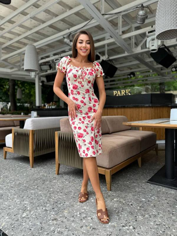 Платье с короткими рукавами приталенное короткое платье с цветочным принтом стильная базов...
