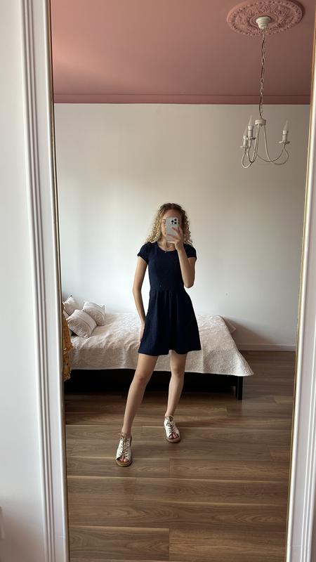 Сукня Гарного синього кольору Розмір:xs Заміри: напівобх. груд-34 Довжина рукава-12 Довжина сукні-80 Ціна-
