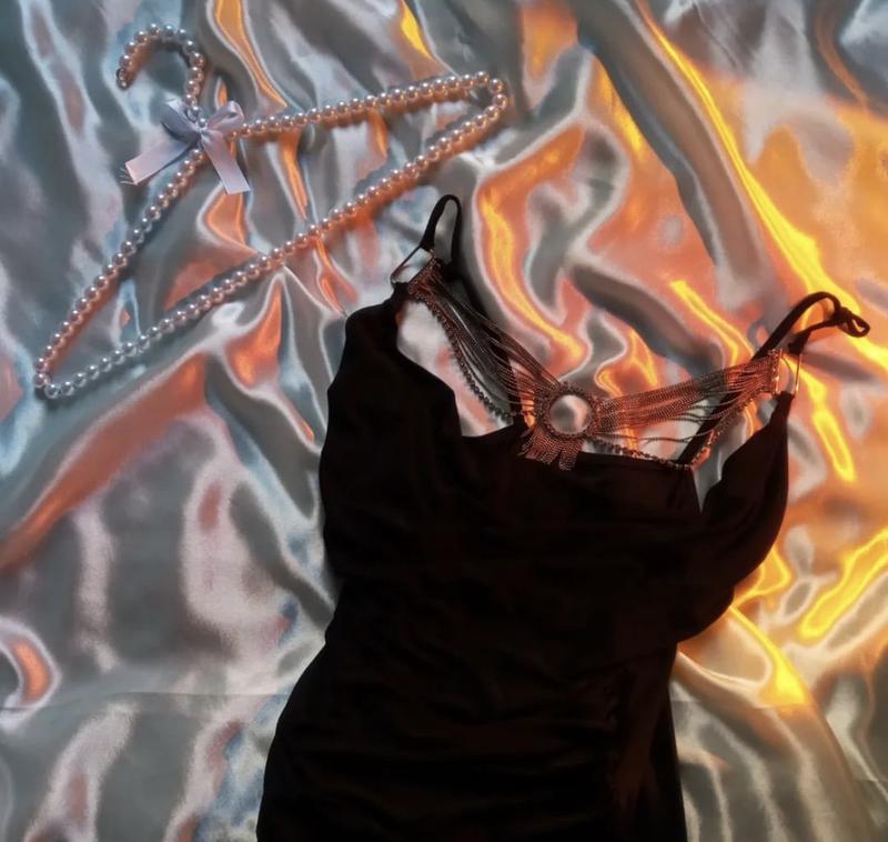 Коротка чорна сукня по фігурі Весь час пролежала в шафі, не було можливості надягнути 1-3 фото не мої, а дівчини, в якої купляла. Розмір S/M
