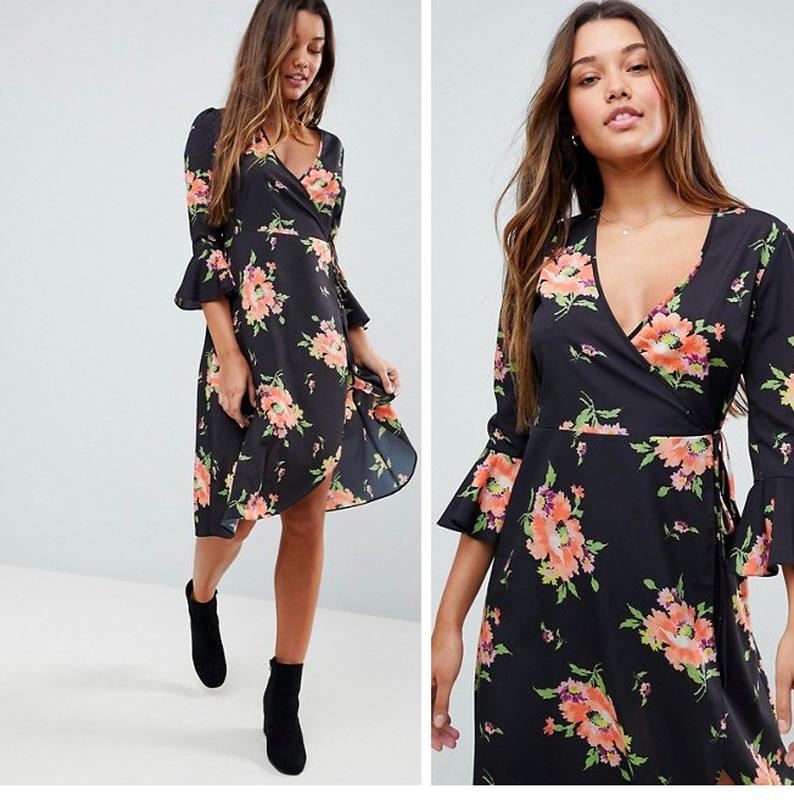 Красивое легкое платье с цветами на запах от asos. Состав 100% полиэстер. длина 102 см ПОГ 44 см ПОТ 35 см (можно чуточку увеличить или уменьшить за счет завязок) плечи 36 см рукав 47 см ПОБ свободно