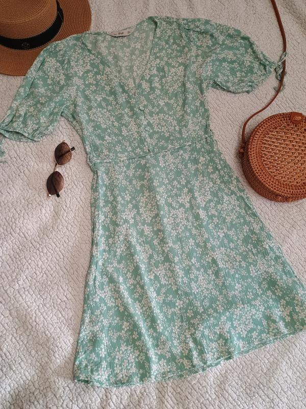 Легкое платье с цветами от f&f. Состав 100% вискоза. Есть нюанс! не обшитая петелька для пояска (растрепалась края) видна на последнем фото. длина 86 см ПОГ 43 см ПОТ 31 см