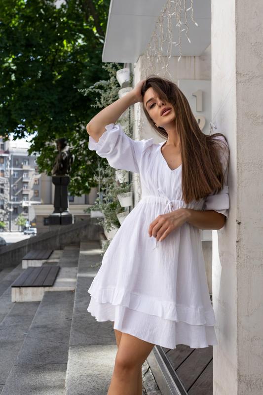 Безопасная оплата Наложенный платеж по предоплате 200грн. Ткань: муслин Состав: 100% хлопок Цвет: белый, черный, голубой, мокко Размер: XS, S, M, L, XL Параметры модели на фото Рост: 163 см, ОГ: 86 см, ОТ: 64 см, ОС: 93 см. На фото на моделях представлена модель размер S (42/44). Комплектация: платье Фактические измерения изделия: Объем по груди: XS-96, S-100; M-104; L-108; XL-112; Объем по талии: XS-62/76, S-70/80; M-74/84; L-78/88; XL-82/92; Объем по бедрам: XS-121, S-125; M-129; L-133; XL-137; Объем рукава сверху: XS-42,5, S-44; M-45,5; L-47; XL-48,5; Длина изделия по спинке: XS-87, S-87; M-87; L-87; XL-87; Длина изделия до таллий: XS-33, S-33; M-33; L-33; XL-33; Длина юбки: XS-54, S-54; M-54; L-54; XL-54; Длина рукава: XS-64, S-64; M-64; L-64; XL-64; Длина рукава из внутреннего шва: XS-48, S-48; M-48; L-48; XL-48;