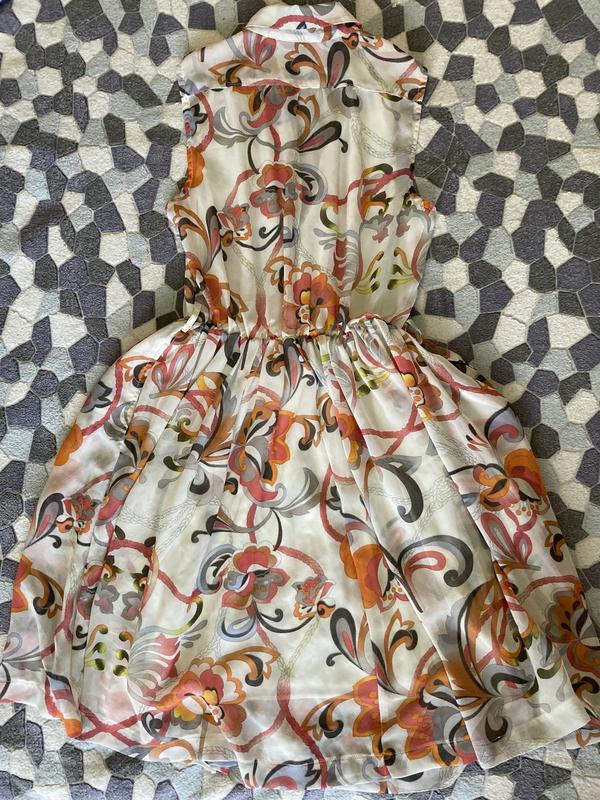 Легкое летнее платье из шифона бренда H&M. Есть подкладка, верх спереди двойной, не просвечивает. На пуговицах, с воротником. Низ красивий летючий, не закоротка, не парка! Талия слегка завышена. Есть шлевки под ремешок. Длина изделия 89см Груди 44см Талия 35см, резиночка тянется