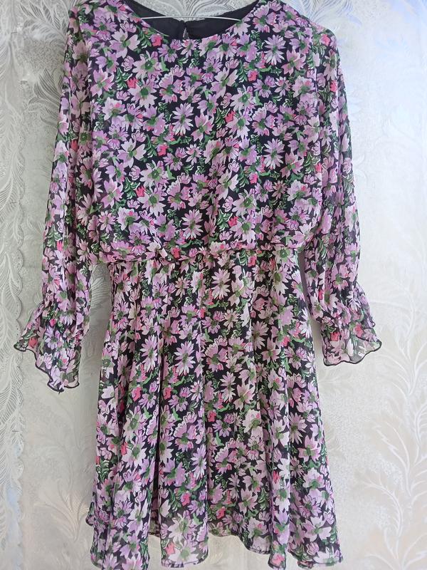 Сукня в квіти р.S. плечі 27. груди44. талія на резинці. рукав 53.довжина 82.