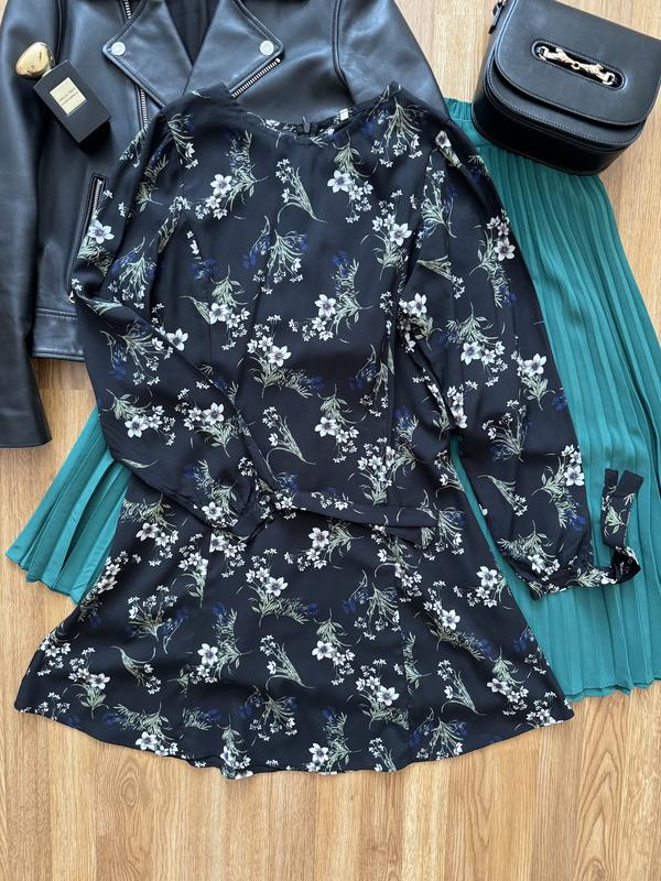 Женское платье в цветочный принт Размер XS, подойдет на S/M Стан - идеальный Рукава внизу идут на завязках Ширина по плечах - 36 см Длина - 88 см Длина рукава - 64 см Ширина под рукавом 48 см Ширина по низу - 79 см