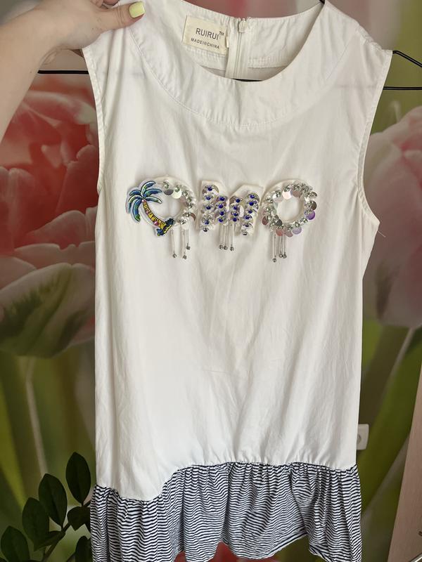 Легкое летнее платье из хлопка. Тканина приємна, не парить. Носила дважды, состояние идеально. Размер XS-M. Длина 85 см.