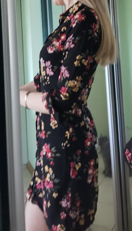 Платье легкое впереди на пуговицах, из 100% вискозы, укороченный рукав на пуговицах. Размер указанного s, больше подойдет на xs