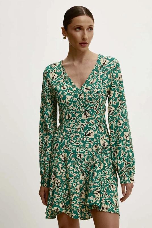 Нова та дуже гарна☺️ на Answear вартість 2000 грн. - Довжина рукава: 64 см. - Довжина: 84 см. - Ширина під пахвами: 43 см. - Ширина талії: 36 см. - Розміри вказані для розміру: S. Склад: 100% віскоза Розкльошений крій. Розвантаження гардеробу
