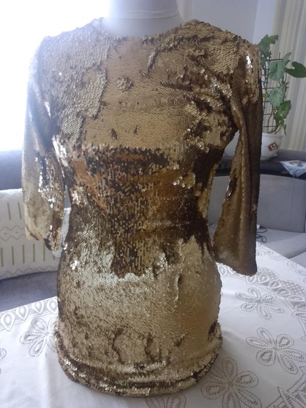 Платье с пайетки новым размером длина 80,рукава 44, объем талии 80,низа 100