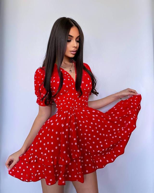 Платье с пышной юбкой арт. ch. 557 Тканина: софт Размеры: 42-44, 46-48 Цвета: черный в белый горох, красный в белый горох Спинка платья на молнии. Хорошее качество. Цена: 1050 грн