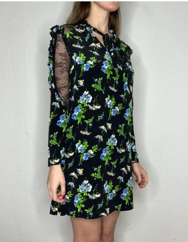 Изысканное платье люксового французского бренда Sandro Paris. Яркие цветы на черном фоне, легкое кружево на рукавах, элегантные рюши на воротнике и рукавах, лента у воротника – все детали продуманы до мелочей, качество на высшем уровне. Состав: 100% шелк, очень качественный, плотный и приятный. Кружево из полиамида. Размер указанного 36 (S), замеры: длина 90 см, полуобхват груди 48 см, длина рукава 57 см, плечи 36 см, длина плеча (от воротника до начала рукава) 11 см. Стан идеальный, новая, на бирочке размера еще есть заколка от этикетки. Фото на модели и манекене взяты из интернета. На сайте бренда подобные платья стоят более 350 97. Доставка по Новой почте или Укр-почтению, быстрая отправка. Приглашаю просмотреть также другие вещи в своем магазине 😊