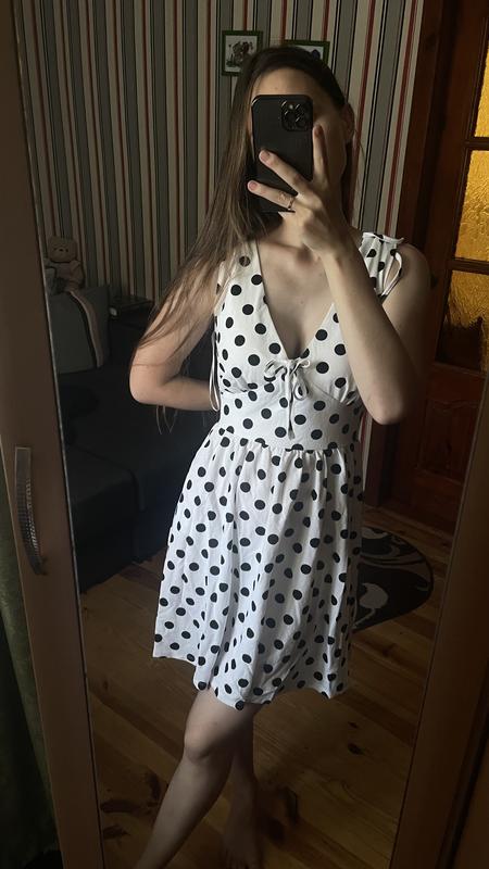 Платье в горох от Mohito, размер S но больше подойдет на М, замеры напишу в сообщение. Переходи ко мне на мой профиль, продаю много интересных своих вещей🌸