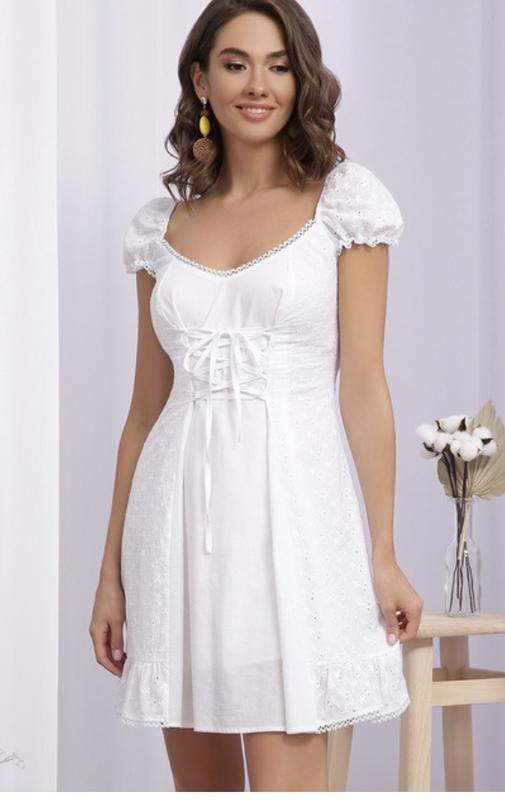 Жіноча біла сукня Glem, розмір М. Матеріал прошва + батист, є підкладка. Довжина - 80 см, обʼєм груди - 88см, талія - 86, бедра - до 116см. Сукня одягалася 1 раз, без плям та дефектів , лише потрібно гарно попрасувати.
