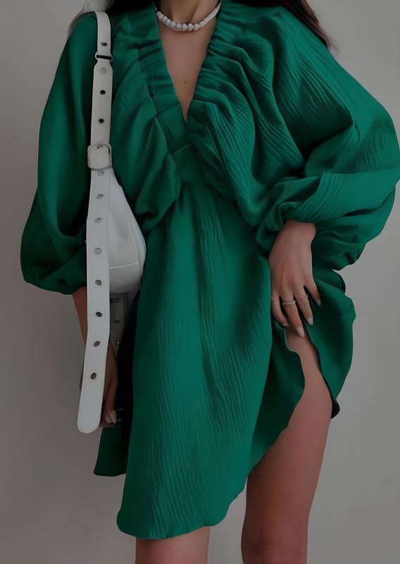 Женское платье короткое из муслина зеленого цвета с широкими рукавами exclusive