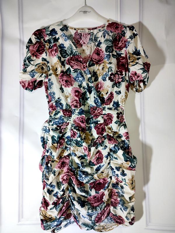 Интересного кроя платье, пишет размер Л, хотя по замерам на С-М, длина 80 пог 45 пот 37 поб до 47
