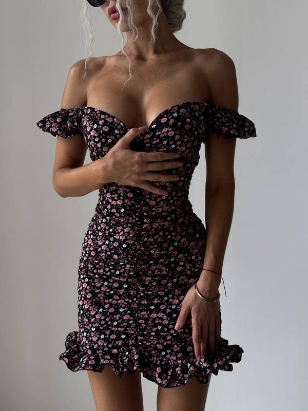 Платье мини в цветочный принт