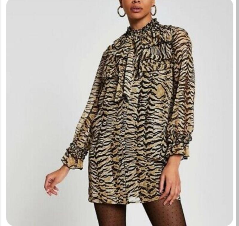 Платье с оборками и горловиной с принтом "тигр" от river island, 46-48